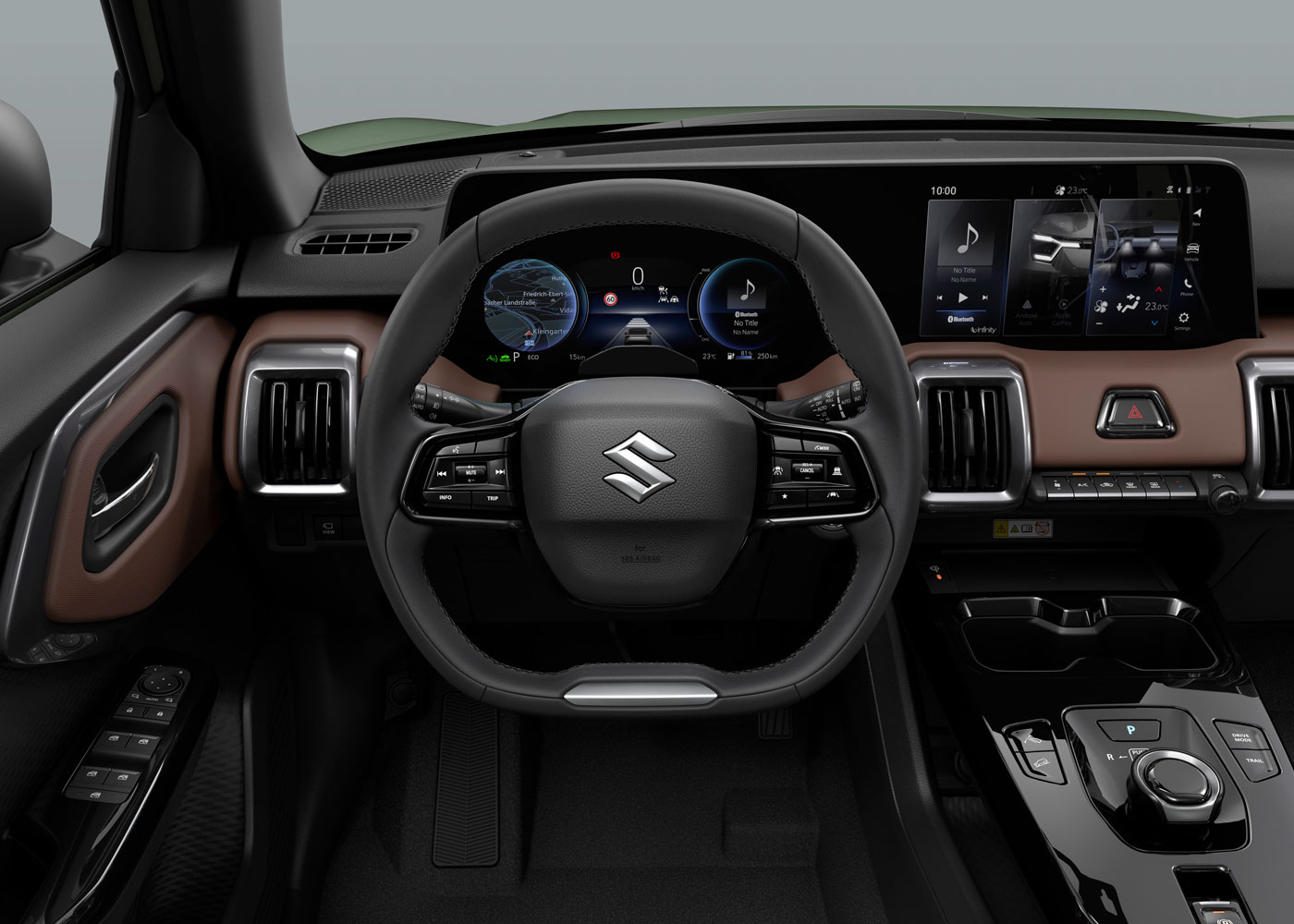 Εσωτερικός Χώρος & Τεχνολογία: Η καμπίνα του e VITARA συνδυάζει ανώτερα υλικά, εργονομία και high-tech λύσεις, με διαδραστική οθόνη infotainment, σύνδεση smartphone και λειτουργίες που βελτιώνουν την καθημερινή εμπειρία οδήγησης.